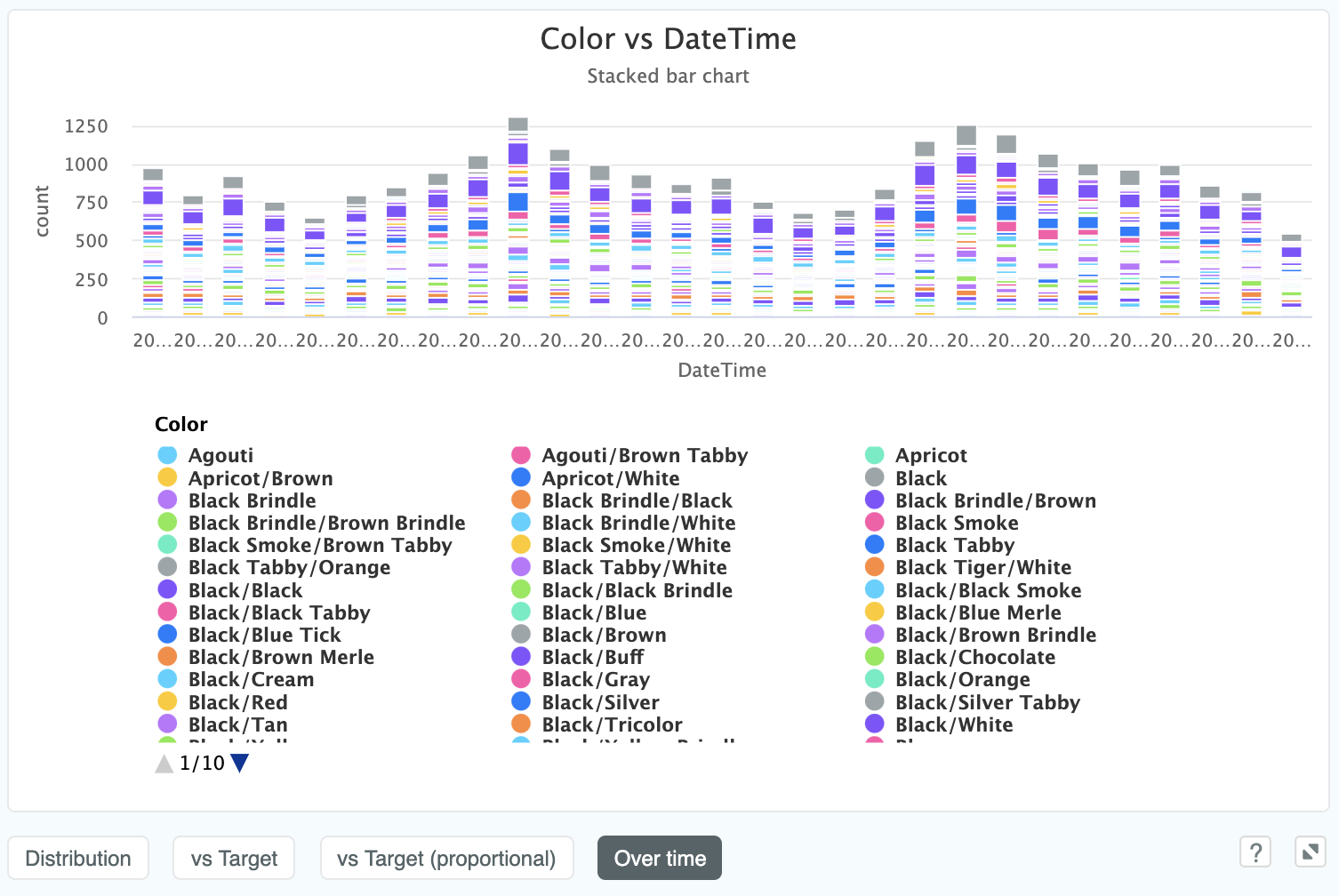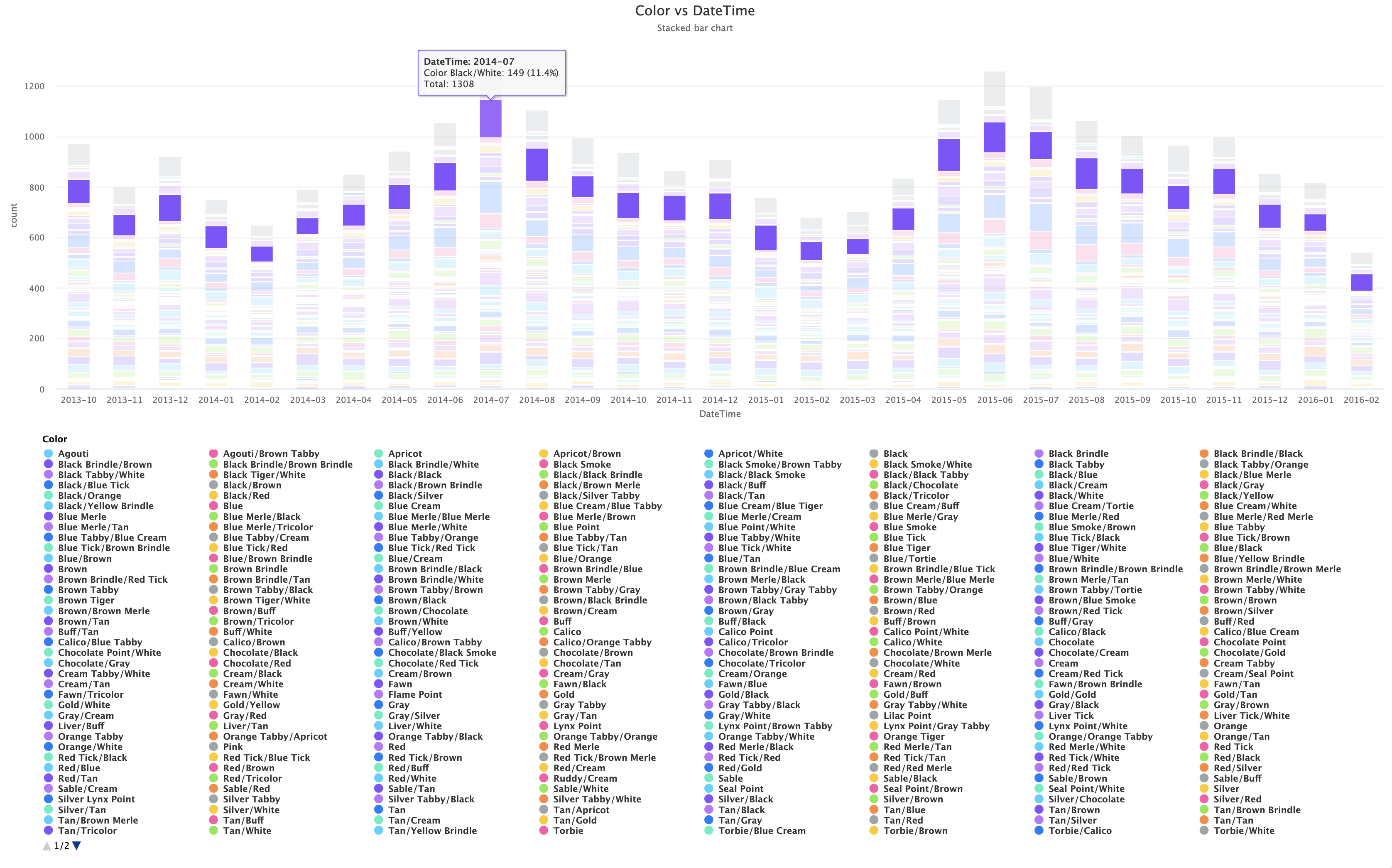 In cases where we can't help but have quite a lot of complexity going on in the chart, like if we plot animal Color over time